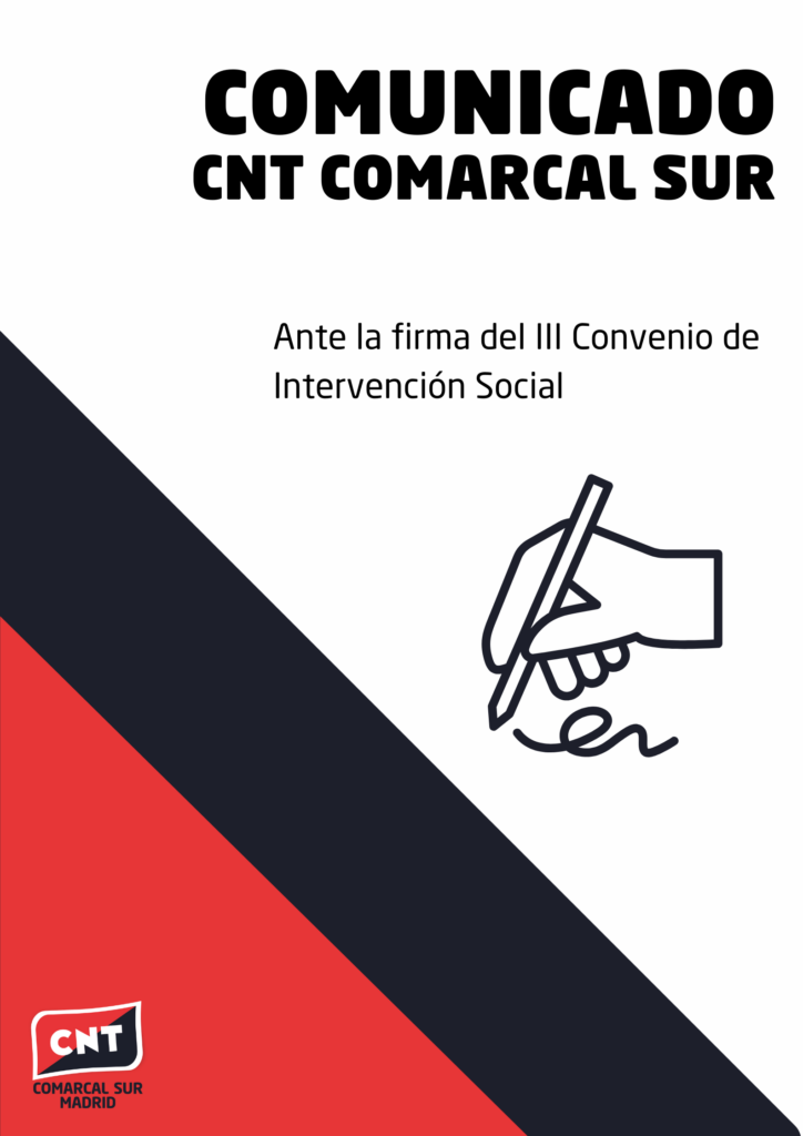 Desde CNT Comarcal Sur Madrid rechazamos el acuerdo alcanzado entre CCOO, UGT y la patronal para el nuevo Convenio Estatal de Acción e Intervención Social. Este acuerdo no responde a las necesidades reales del sector, no dignifica nuestras condiciones laborales y consolida una precariedad estructural que arrastramos desde hace años. Aceptar subidas salariales que solo siguen parcialmente el IPC supone, en la práctica, firmar una nueva pérdida de salario real durante los próximos cuatro años. Pero el problema no es únicamente salarial: este acuerdo no supone una mejora estructural del convenio, que continúa anclado en un marco obsoleto heredado de 2007, ignorando deliberadamente las reivindicaciones centrales del sector.