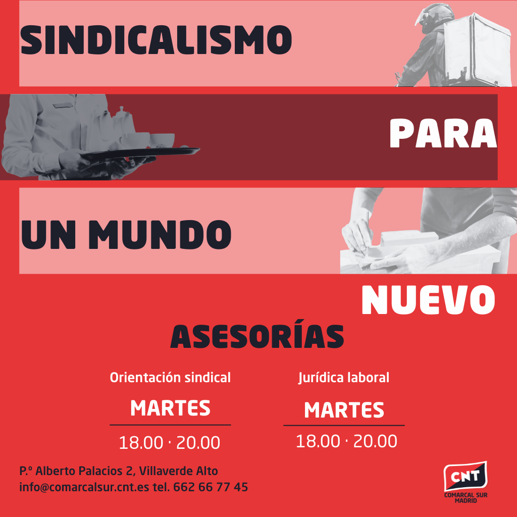 - Posibilidad de constituir una Sección Sindical de CNT en tu empresa o centro de trabajo bajo la supervisión y el asesoramiento continuado del Sindicato.
